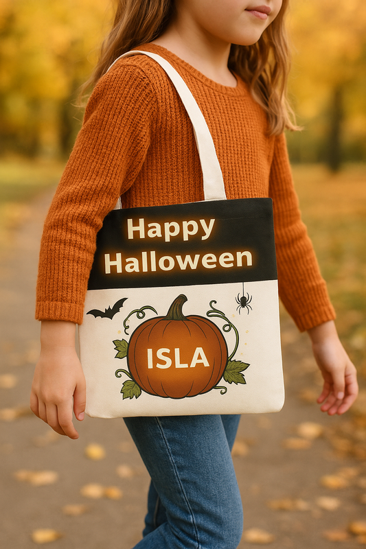Personalised Halloween Trick or Treat Bag – Kids Pumpkin Design - Pre Orders Now