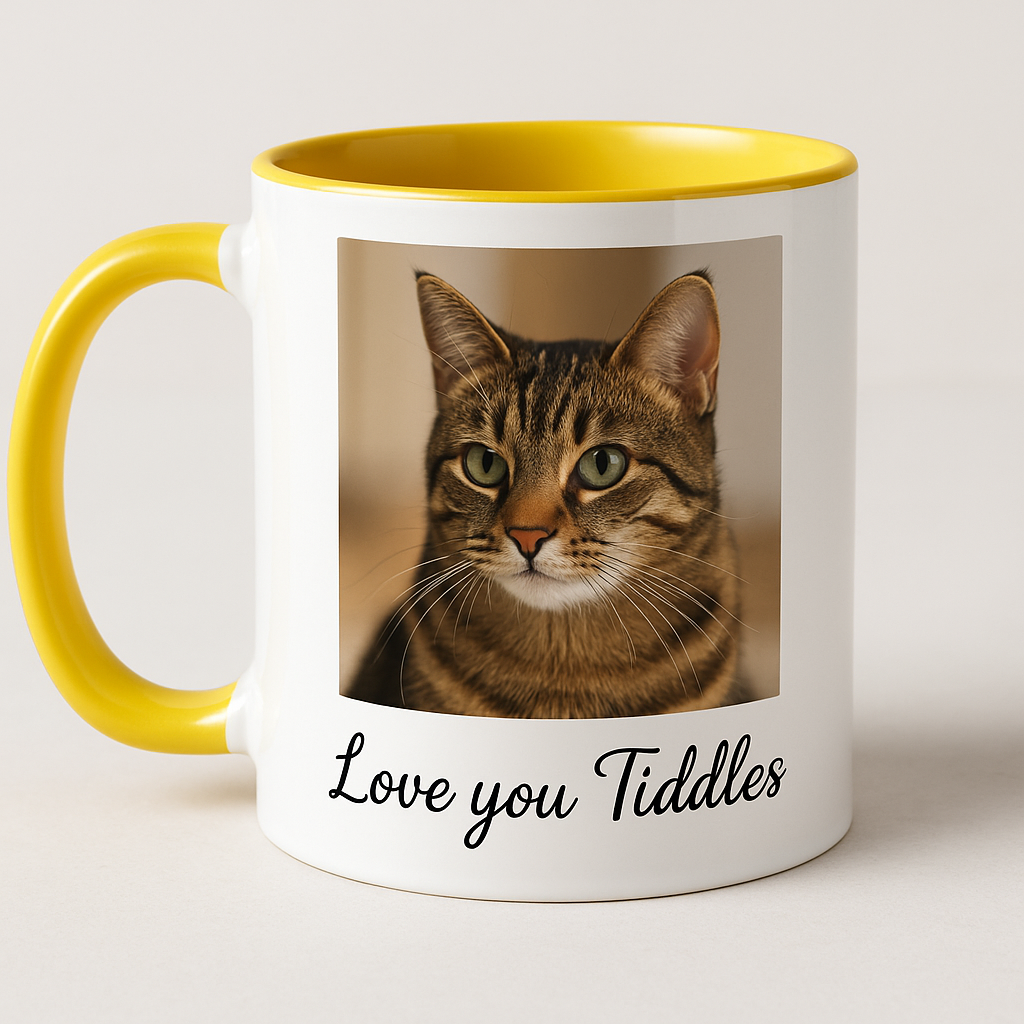 Introducing Our Custom Photo Mug with Yellow Handle and Interior